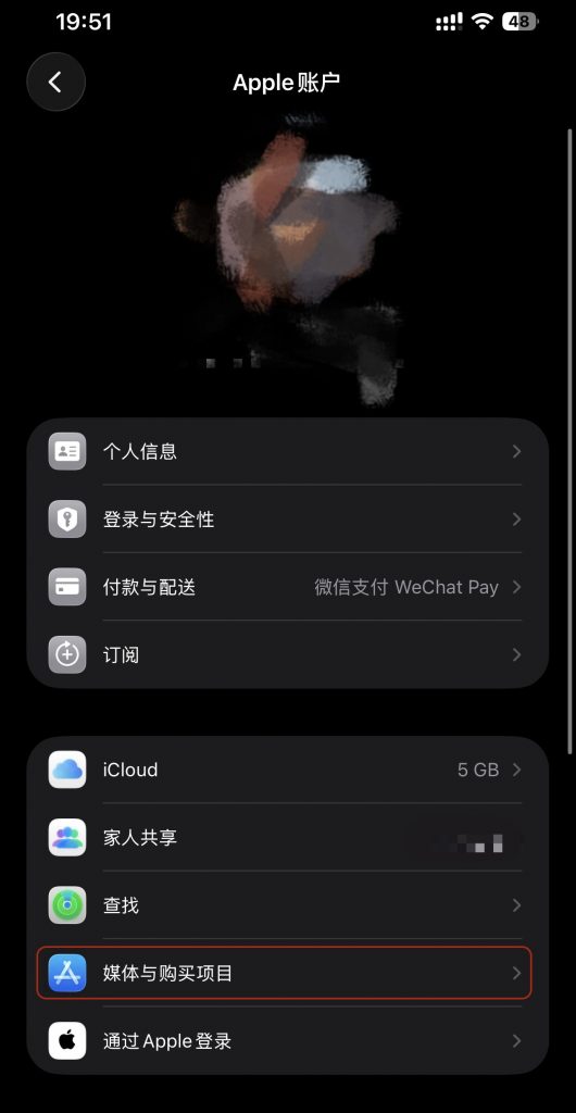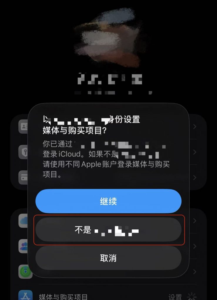 2、选择媒体与购买项目 -> 退出登录 -> 不是 **** ->使用外区 Apple id 重新登陆