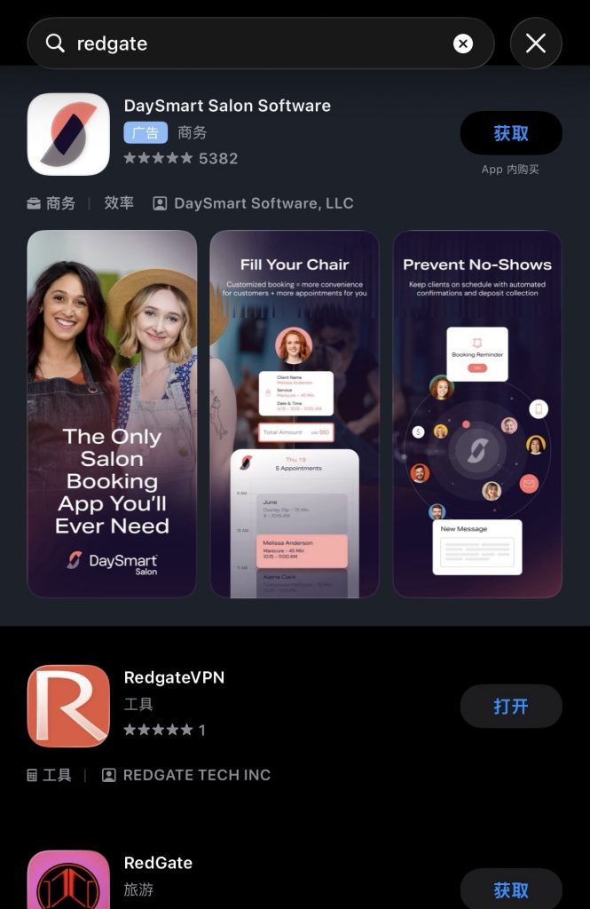 3、App Store 搜索 Redgate vpn 下载